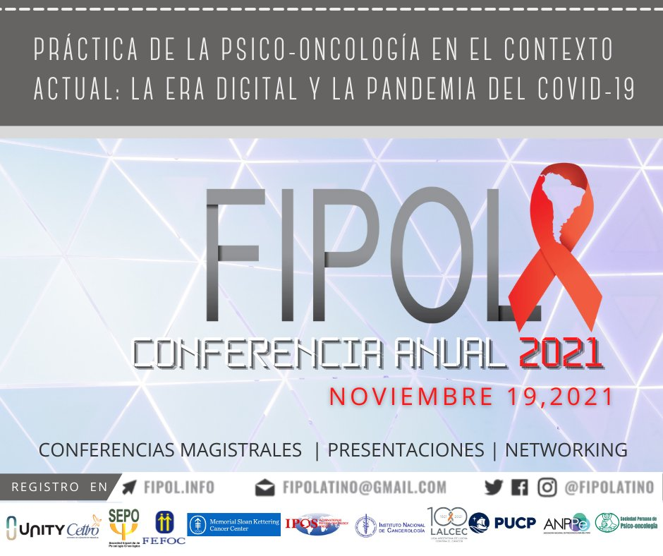 Conferencia organizada por FIPOL, vía zoom: 5 ponencias, 1 panel de expertos internacionales discutiendo los avances de psico-oncología en la era digital y aplicaciones a Latinoamérica.